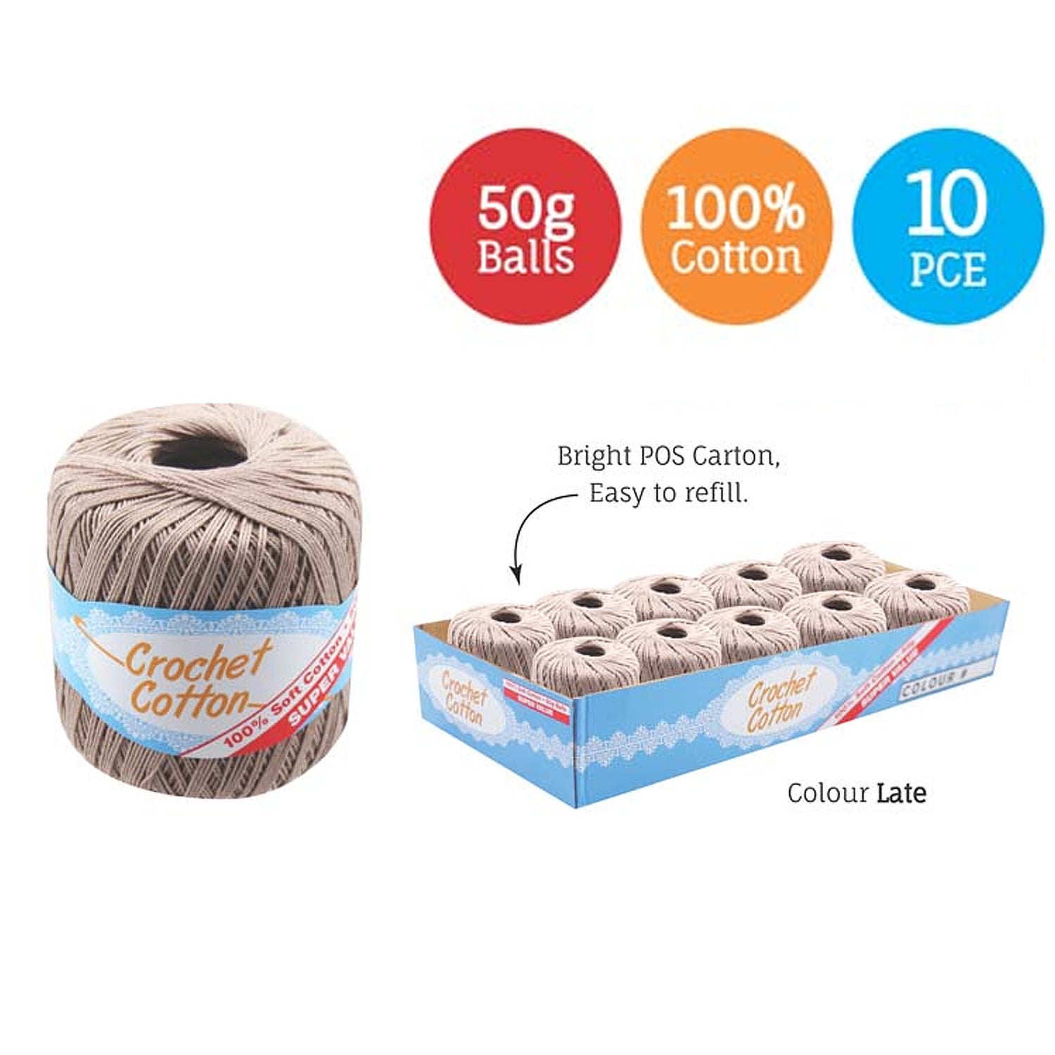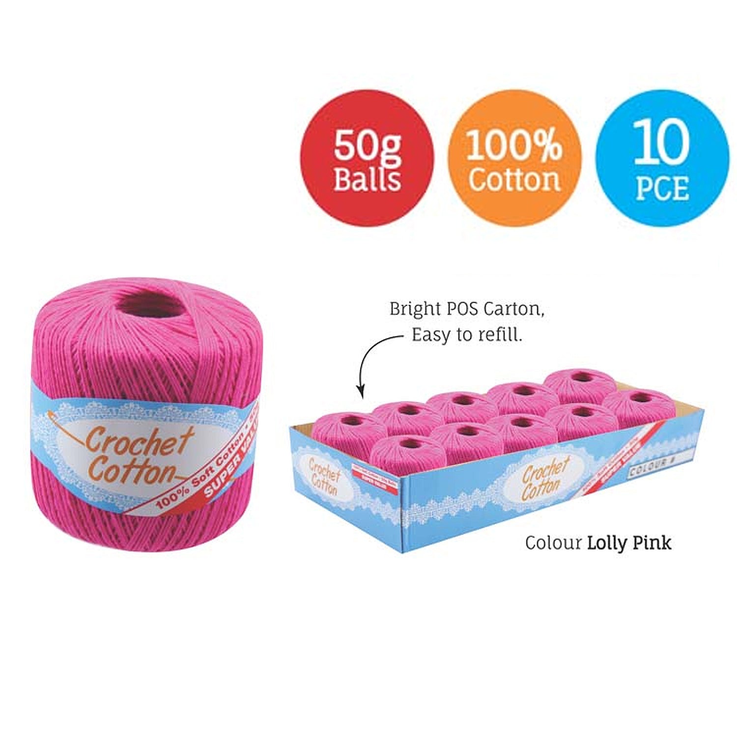 Cotton Crotchet 100% Boll Ball 50g Soft Bulk Colour Coloured Size C Needle 2.5mm