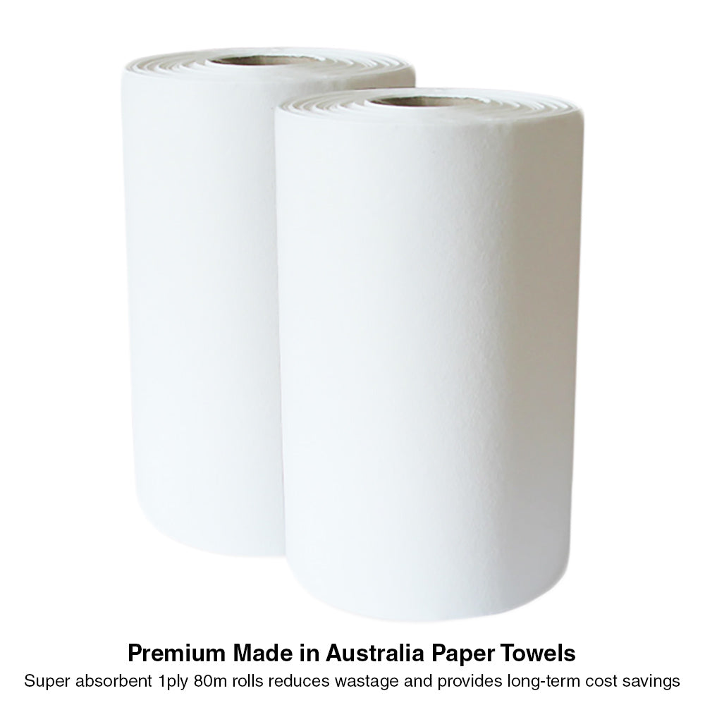 - Super absorbent 1ply 80m rolls reduces wastage and provides long-term cost savings